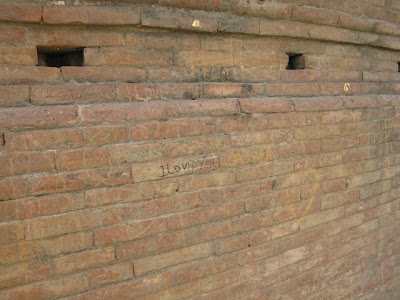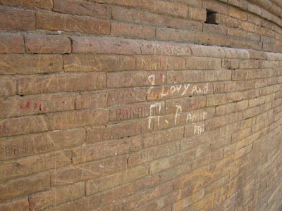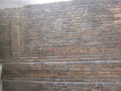 On the side of this ancient and sacred stupa I noticed a lot of graffiti. There were Indian people’s names such as so and so was here or someone loves someone. These were probably inscribed with a key or other sharp object. There was no sign of any authorities protecting the site from such desecration.